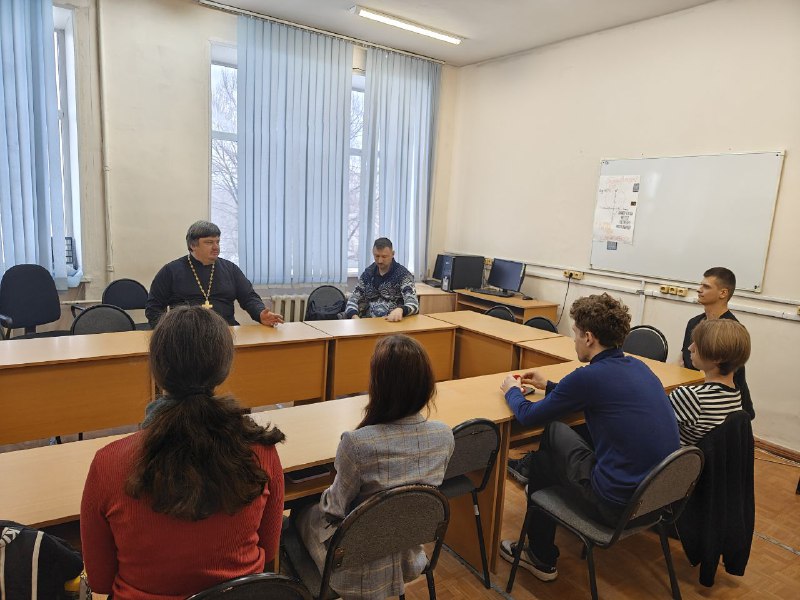 23 декабря 2025 г. протоиерей Стефан Цуркан, настоятель храма прп. Серафима Саровского, провел беседу со студентами педагогического института. Были затронуты вопросы истории христианства, вековые традиции и ценности, отношение к семье. С большим интересом студенты вовлеклись в диалог и получили ответы на многие волнующие их вопросы.
