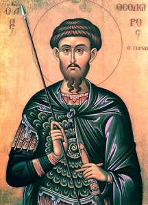 ВОСПОМИНАНIЕ ЧУДА СВ. ВМЧ. ѲЕО́ДОРА ТИ́РОНА Феодор Тирон пострадал около 306г. Спустя 50 лет после его кончины император Юлиан Отступник, желая надругаться над христианами, приказал окроплять в 1-ю седмицу Великого поста всю еду на рынках идоложертвенной кровью. Свт. Феодор, явившись во сне архиеп. Евдоксию, открыл ему это, повелев есть вареную пшеницу с медом–коливо. В память этого события Церковь совершает празднование вмч. Феодору Тирону в субботу 1-й недели Великого поста, а в пятницу вечером в храмах благословляется коливо и раздается верующим. |